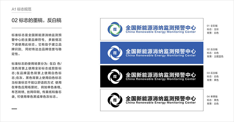 制約新能源消納的關(guān)鍵因素,為新能源的優(yōu)化布局和行業(yè)政策制定提供參考,促進(jìn)我國新能源高質(zhì)量發(fā)展。 藍(lán)藍(lán)設(shè)計對全國新能源消納監(jiān)測預(yù)警中心的工作范圍做了調(diào)查研究,首先理解業(yè)務(wù)和核心競爭力,之后調(diào)查了行業(yè)相關(guān)品牌標(biāo)志設(shè)計,聽取了大家的期望,之后設(shè)計出多版logo供選擇。標(biāo)志設(shè)計確定后進(jìn)行了VI和宣傳冊的設(shè)計。