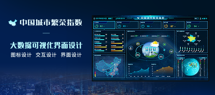 藍(lán)藍(lán)設(shè)計經(jīng)常會接到大屏設(shè)計的項目,如洞見技術(shù)中國城市繁榮指數(shù)大屏界面設(shè)計,超圖集團四川統(tǒng)計綜合管理平臺大屏界面設(shè)計