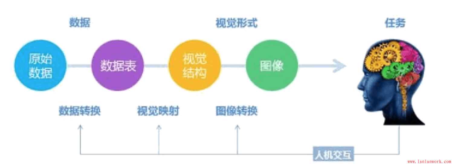 有了故事,還需要找到數(shù)據(jù),并且具有對數(shù)據(jù)進(jìn)行處理的能力,圖1是一個可視化參考模型,它反映的是一系列的數(shù)據(jù)的轉(zhuǎn)換過程: