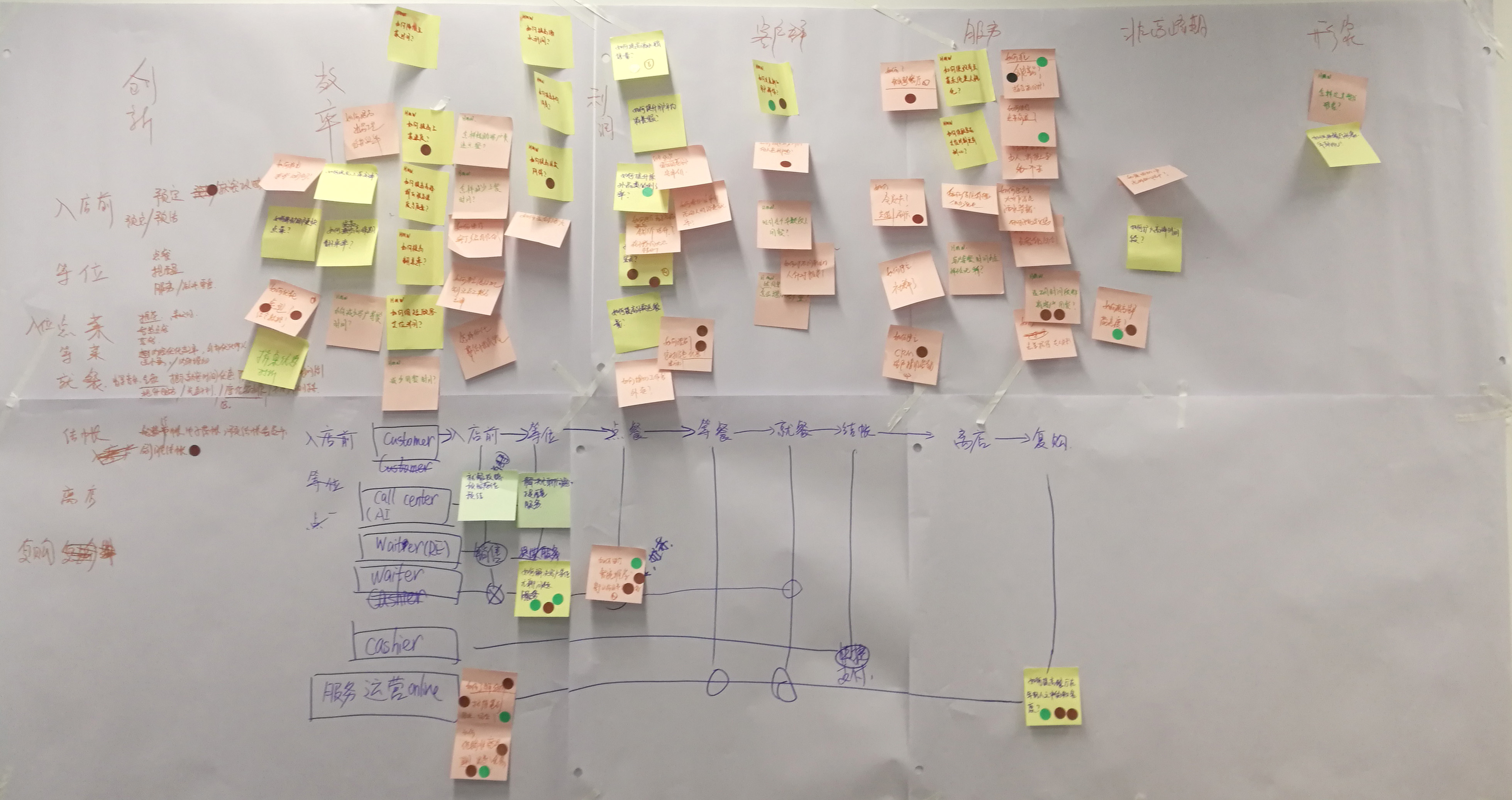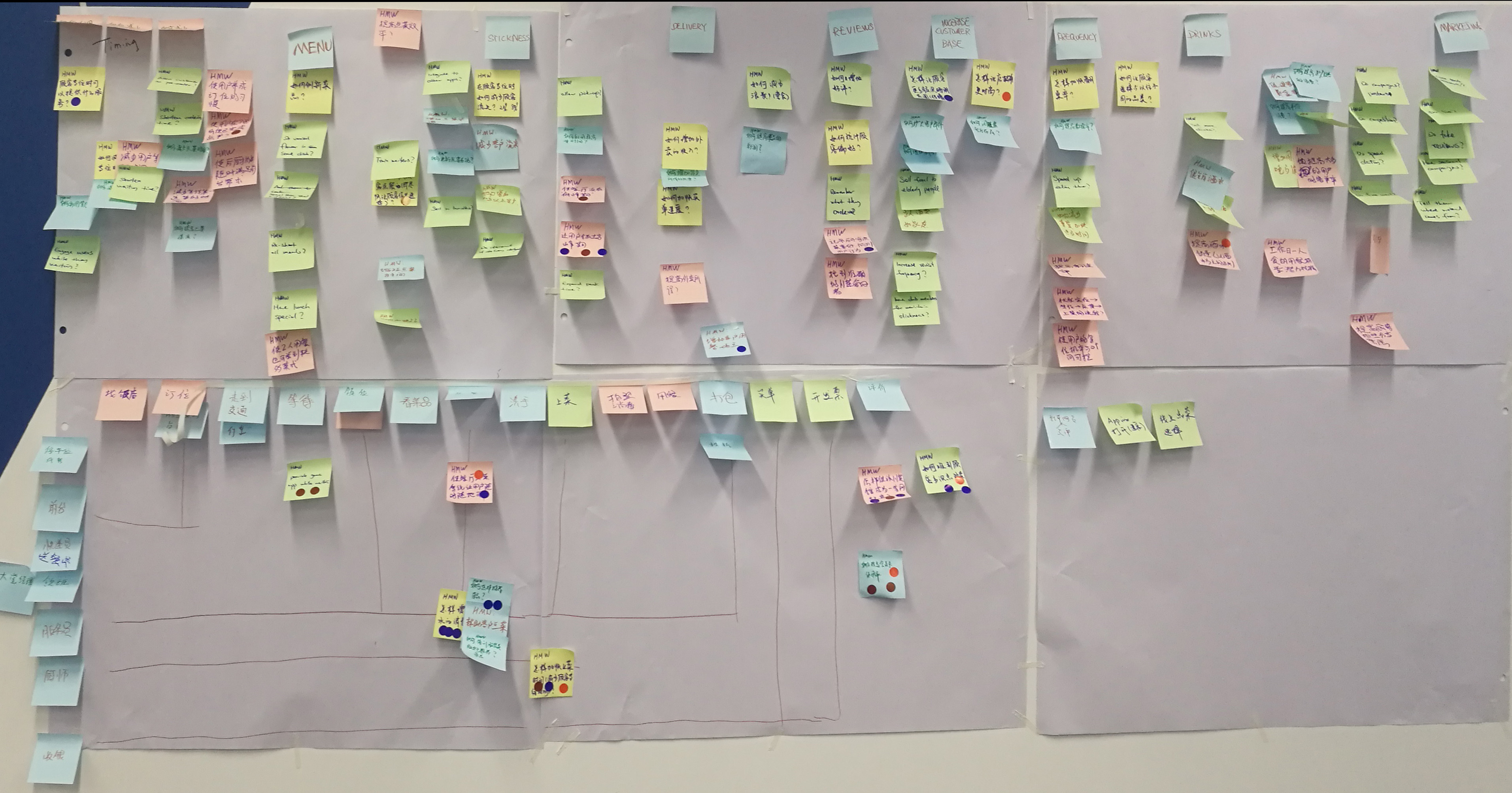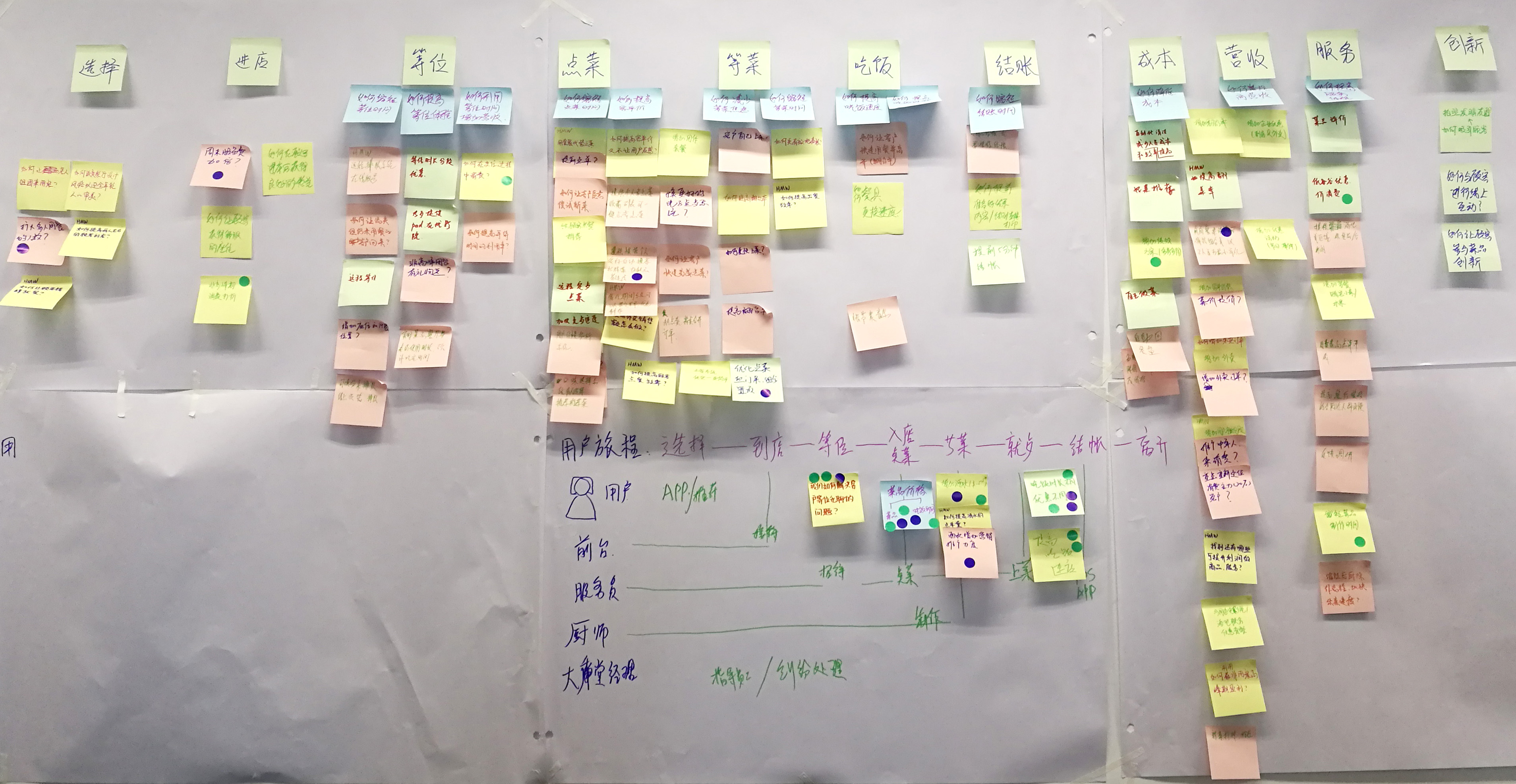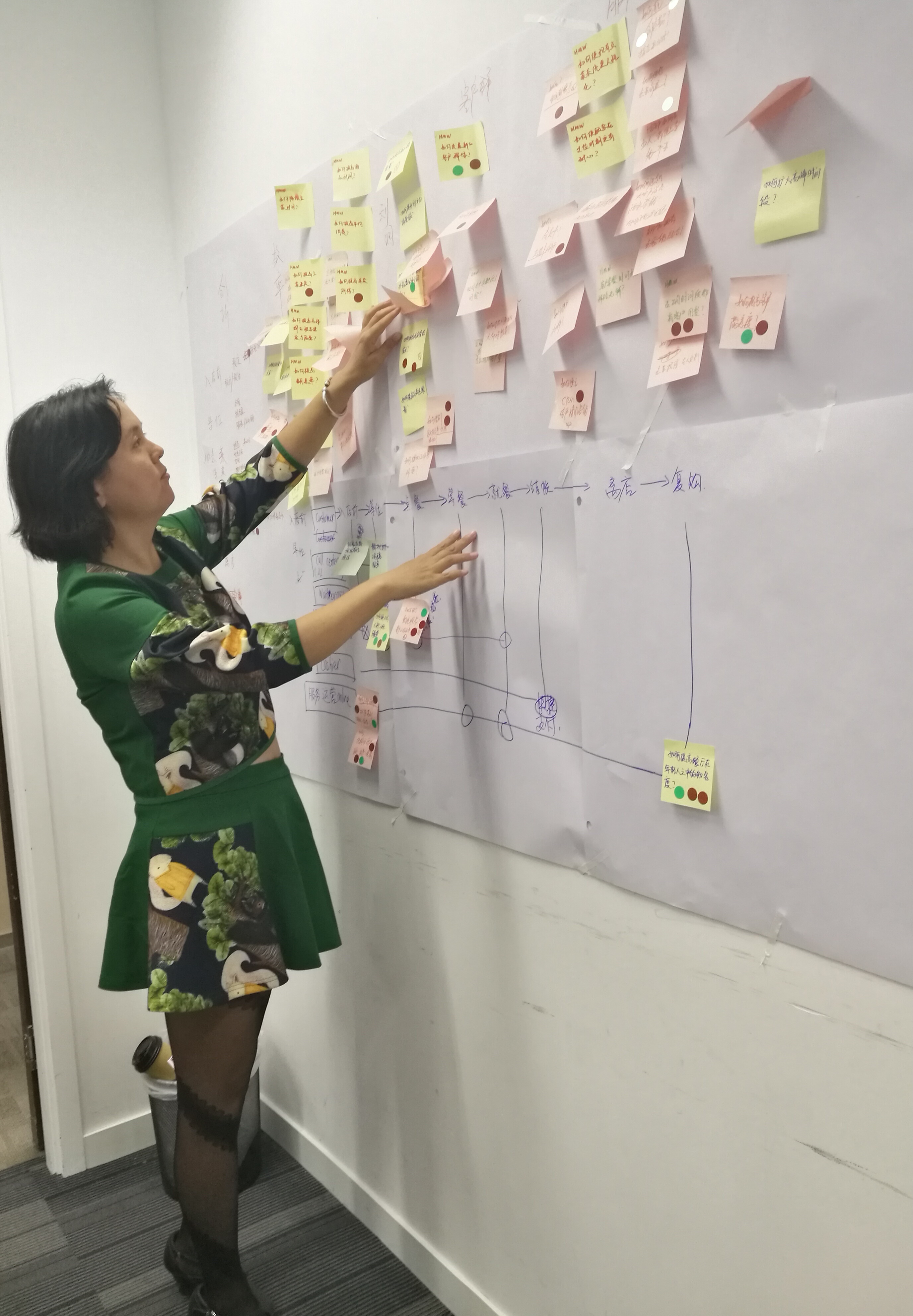 9把投票最多的標(biāo)簽貼到用戶體驗地圖的相關(guān)位置上,有幾個問題是得了四票的,大家此時都很有成就感。