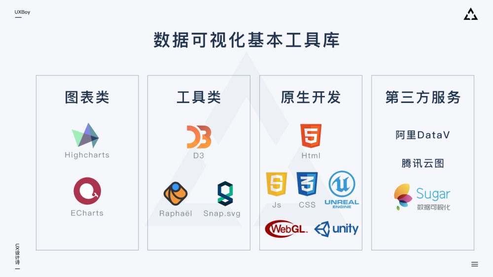 工具類的需要有一定的代碼基礎(chǔ),里面同樣有豐富的圖表,所以跟開(kāi)發(fā)的溝通也很重要,因?yàn)樗麄兛赡軙?huì)了解多一些更新的前沿的圖表形式,是我們?cè)O(shè)計(jì)師不知道的,所以彼此多溝通交流實(shí)在太重要了。