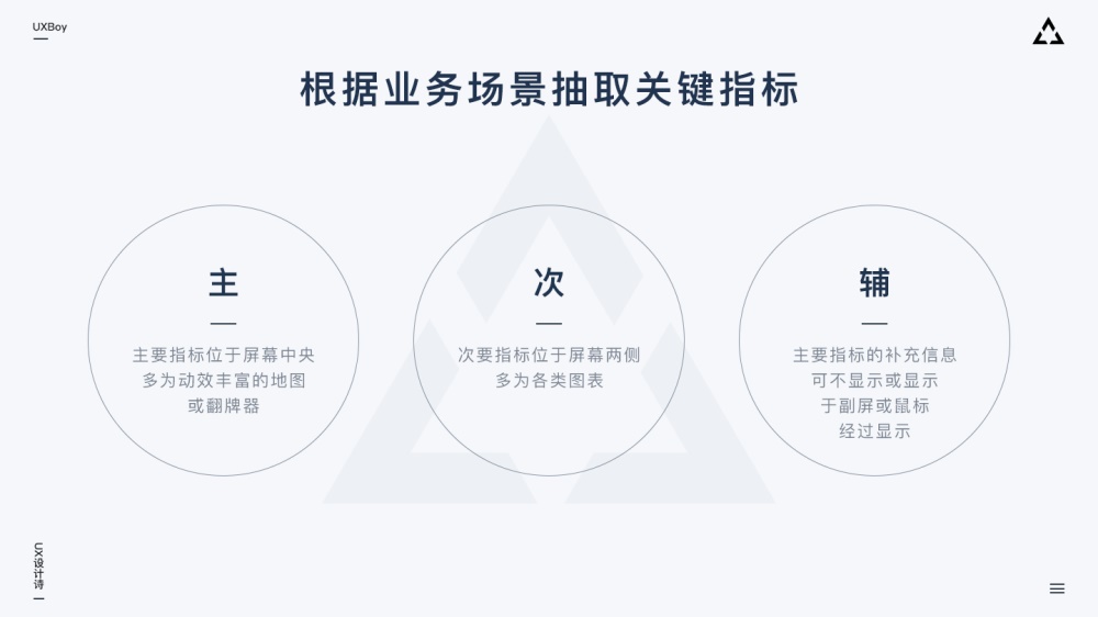 確定關(guān)鍵指標(biāo)后,根據(jù)業(yè)務(wù)需求擬定各個(gè)指標(biāo)展示的優(yōu)先級(jí)(主、次、輔)。