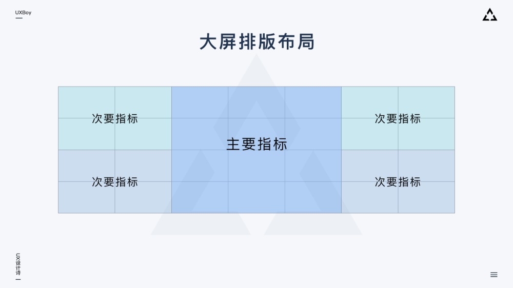 主次分明、條理清晰、注意留白,合理利用大屏上各個(gè)小的顯示單元,并盡量避免關(guān)鍵數(shù)據(jù)被拼縫分割。