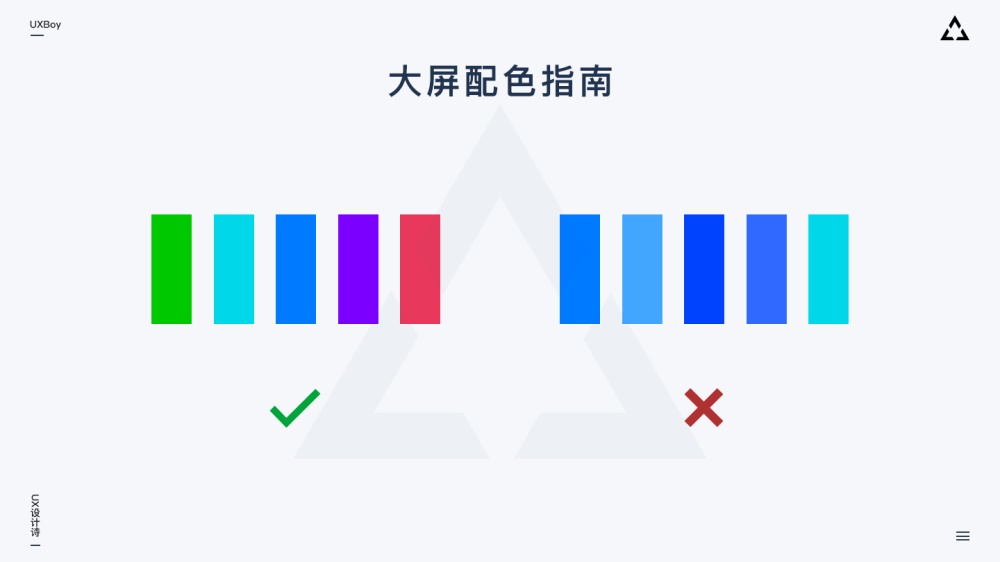 大屏的分辨率、比例、使用環(huán)境、投射方式等均會(huì)對(duì)設(shè)計(jì)造成影響。理想情況下,我們應(yīng)該在設(shè)計(jì)開(kāi)始前,就能打開(kāi)大屏系統(tǒng)做一些簡(jiǎn)單測(cè)試。我們可以從網(wǎng)上收集不同設(shè)計(jì)師不同風(fēng)格的大屏設(shè)計(jì)作品,然后投上去查看實(shí)際效果。因?yàn)榇蠖鄶?shù)時(shí)候大屏都會(huì)存在色彩偏差,這時(shí)通過(guò)測(cè)試我們就能發(fā)現(xiàn)漸變色、鄰近色等不同類型的色彩搭配是否可以在目標(biāo)大屏上良好呈現(xiàn),如果不可以,那我們?cè)O(shè)計(jì)進(jìn)行時(shí)就不要使用顯示效果不佳的色彩搭配。另一方面,樣圖溝通環(huán)節(jié)及時(shí)測(cè)試也很重要。