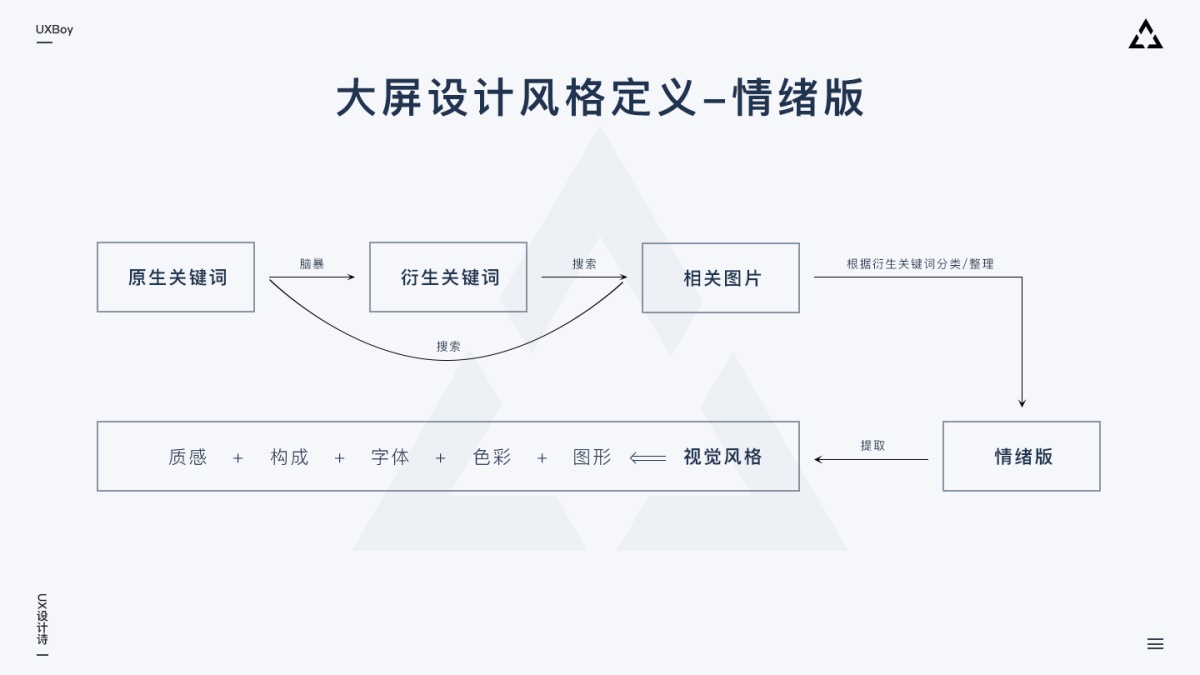 大屏雖酷炫,但實(shí)際上也是運(yùn)行在瀏覽器里的 Web 頁(yè)面,所以大屏設(shè)計(jì)風(fēng)格定義方法也同樣可以用情緒板來(lái)做,這種方法也是目前比較科學(xué)高效的風(fēng)格定義手段。