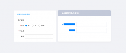 必填項(xiàng)是指用戶(hù)必須要輸入有效的文本信息,否則,該表單就不能正常提交、保存等操作;必填項(xiàng)一般要有明確標(biāo)識(shí),除非全部是必填項(xiàng),且必填項(xiàng)數(shù)量在7個(gè)以?xún)?nèi)。選填項(xiàng)比較少時(shí),互聯(lián)網(wǎng)產(chǎn)品一般必填項(xiàng)不做標(biāo)識(shí),非必填項(xiàng)后面則標(biāo)注選填字樣。