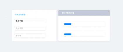 即標(biāo)簽位于輸入框內(nèi),擁有節(jié)約縱向和橫向空間的優(yōu)勢(shì)。行內(nèi)標(biāo)簽可分為齊行內(nèi)文本標(biāo)簽,行內(nèi)圖標(biāo)標(biāo)簽,浮動(dòng)標(biāo)簽