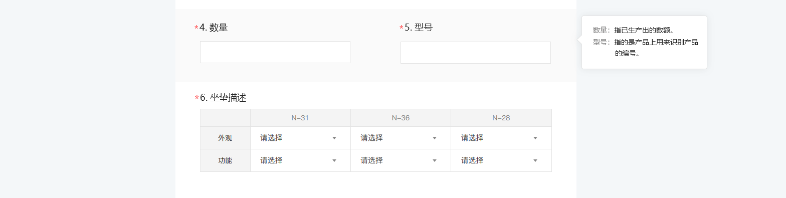 如果幫助文字更適用于一組相關輸入框、而不是單個輸入框,自動即時幫助同樣有用。 例如:觸發(fā)“數(shù)量”“型號”這一行,會自動高亮顯示每組信息的相關幫助信息。