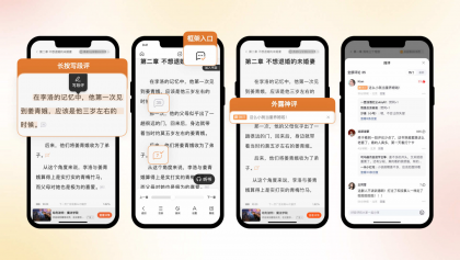 閱讀器場景是用戶使用時(shí)長最長的一個(gè)場景。因此我們?yōu)橛脩籼峁┝硕卧u(píng)功能,方便用戶閱讀過程中和書友進(jìn)行交流,為了不影響閱讀的流暢性,我們采用弱化的段評(píng)圖標(biāo)樣式和色彩,段評(píng)入口設(shè)計(jì)在段落尾部,減少對(duì)閱讀的干擾。