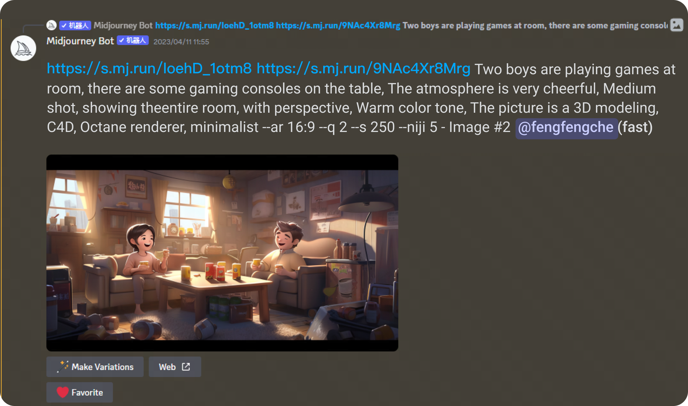 確定好修改方向后,我們回到Midjourney中,設置好混音模式Remix mode,修改關鍵詞對畫面中元素進行替換。