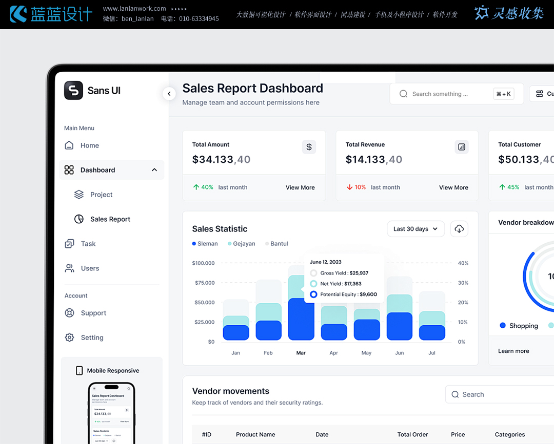 與C端產(chǎn)品追求個性化和娛樂化不同,B端產(chǎn)品更注重高效與實用性。在UI設計中,應優(yōu)先考慮用戶的工作效率。通過合理的布局、明確的導航、快速的響應以及簡潔的操作流程,減少用戶的認知負擔,提高操作效率。同時,要確保信息的準確傳達和數(shù)據(jù)的可視化展示,幫助用戶快速理解數(shù)據(jù)、做出決策。