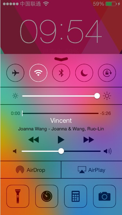 之所以說(shuō)這是 iOS 7 上最美好的改進(jìn),因?yàn)闊o(wú)論在鎖屏狀態(tài)下,抑或在應(yīng)用當(dāng)中,只要指尖從屏幕底部向上滑動(dòng),即可調(diào)出 Control Center。