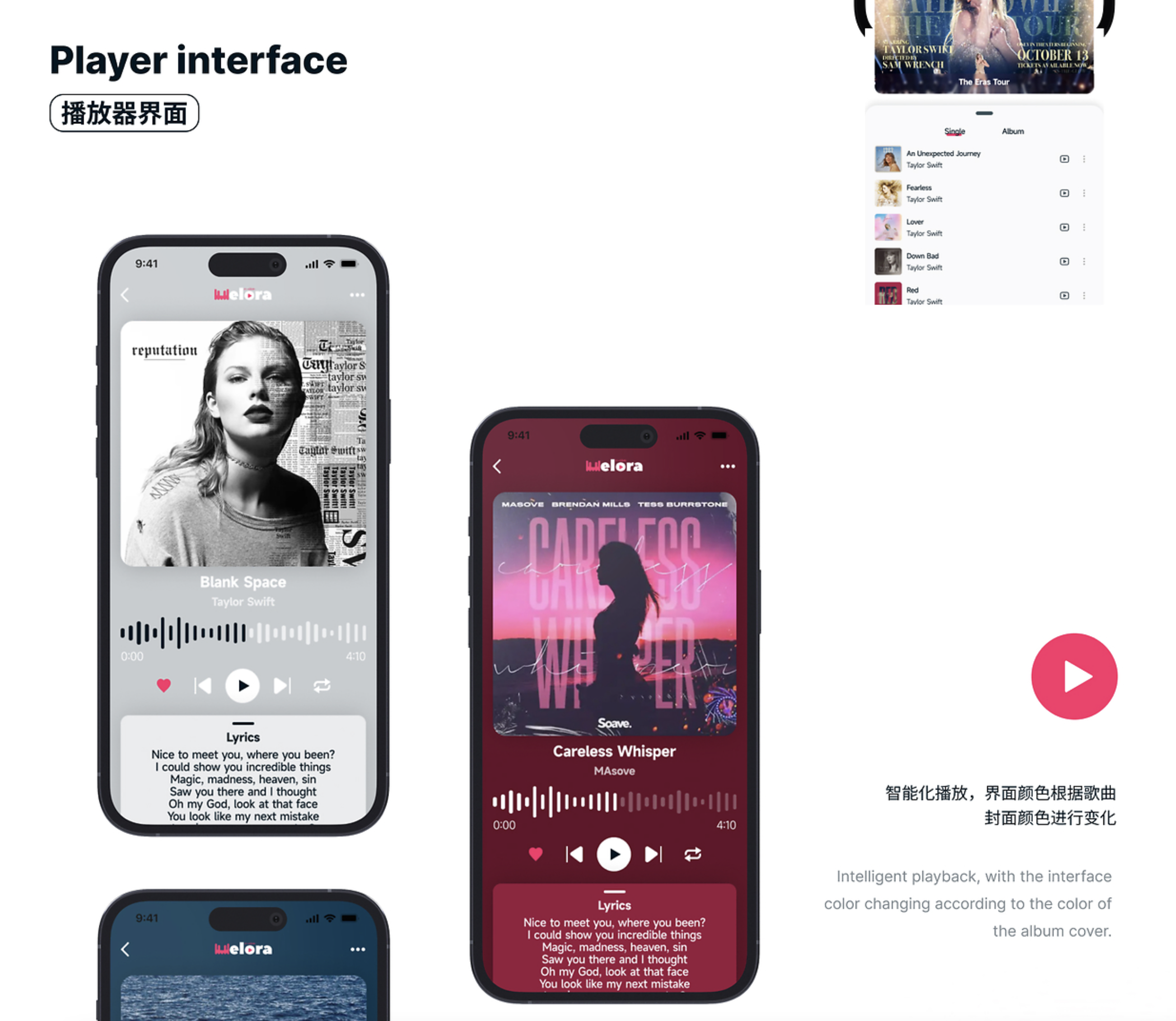 “Melora”是一款創(chuàng)新的音樂軟件,致力于為音樂愛好者提供一個(gè)全面的音樂體驗(yàn)平臺(tái)它擁有豐富音樂庫涵蓋多種風(fēng)格和流派,滿足不同用戶的音樂需求。同時(shí)Melora提供便捷的音樂創(chuàng)作工具,幫助用戶輕松創(chuàng)作和分享音樂作品。其智能推薦算法能夠根據(jù)用戶喜好推薦個(gè)性化音樂內(nèi)容,讓用戶更高效地發(fā)現(xiàn)新音樂。簡潔明了的界面設(shè)計(jì),讓操作流暢易上手,無論是欣賞、創(chuàng)作還是分享音樂,Melora都能為用戶帶來愉悅的音樂體驗(yàn)。