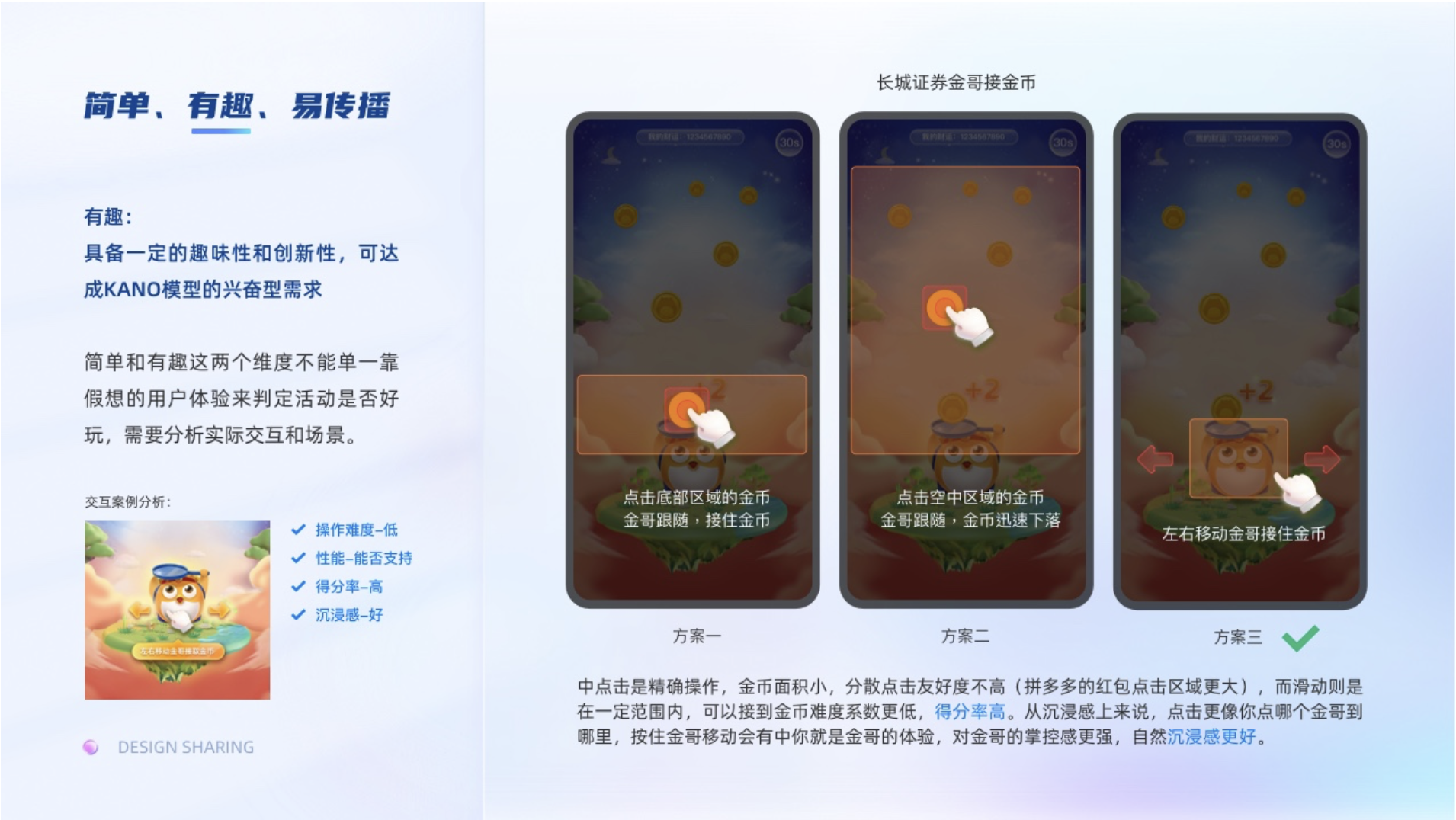 設(shè)計方案時,需要考慮到開發(fā)實現(xiàn)的可行性。比如活動的任務(wù)得分和游戲得分規(guī)則機(jī)制,開發(fā)算法能否實現(xiàn),如果開發(fā)算法難以實現(xiàn)就會導(dǎo)致大返工。所以需要及早跟開發(fā)做好評審工作,并且是很細(xì)致的評審,只是粗略評審后續(xù)還會出現(xiàn)問題。
