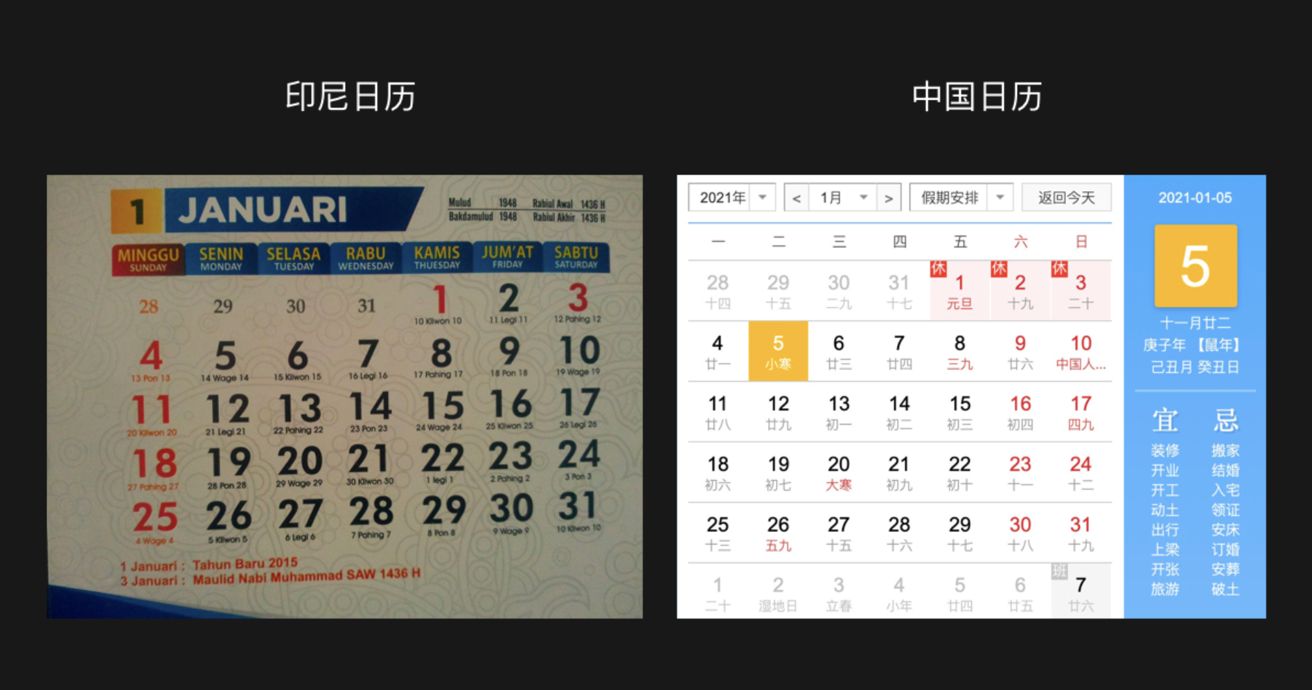 印尼的日歷沿用了西方的傳統(tǒng)慣例,將星期天作為一周的開始。