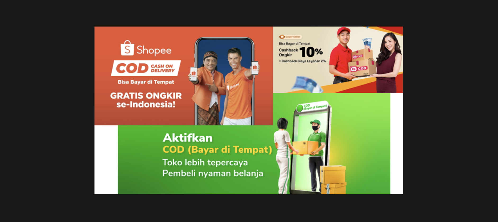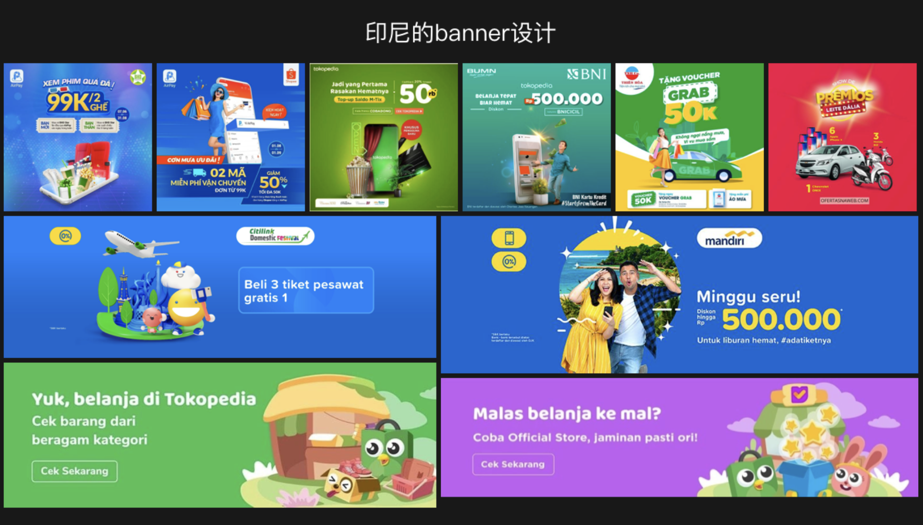 下圖是印尼本土的 banner 風(fēng)格,local 的設(shè)計偏愛使用濃重的色彩,且純度大于明度。背景大部分是采用純色,沒有過多的氛圍裝飾。運用高飽合度色彩的前進(jìn)感,使主體從背景中突出