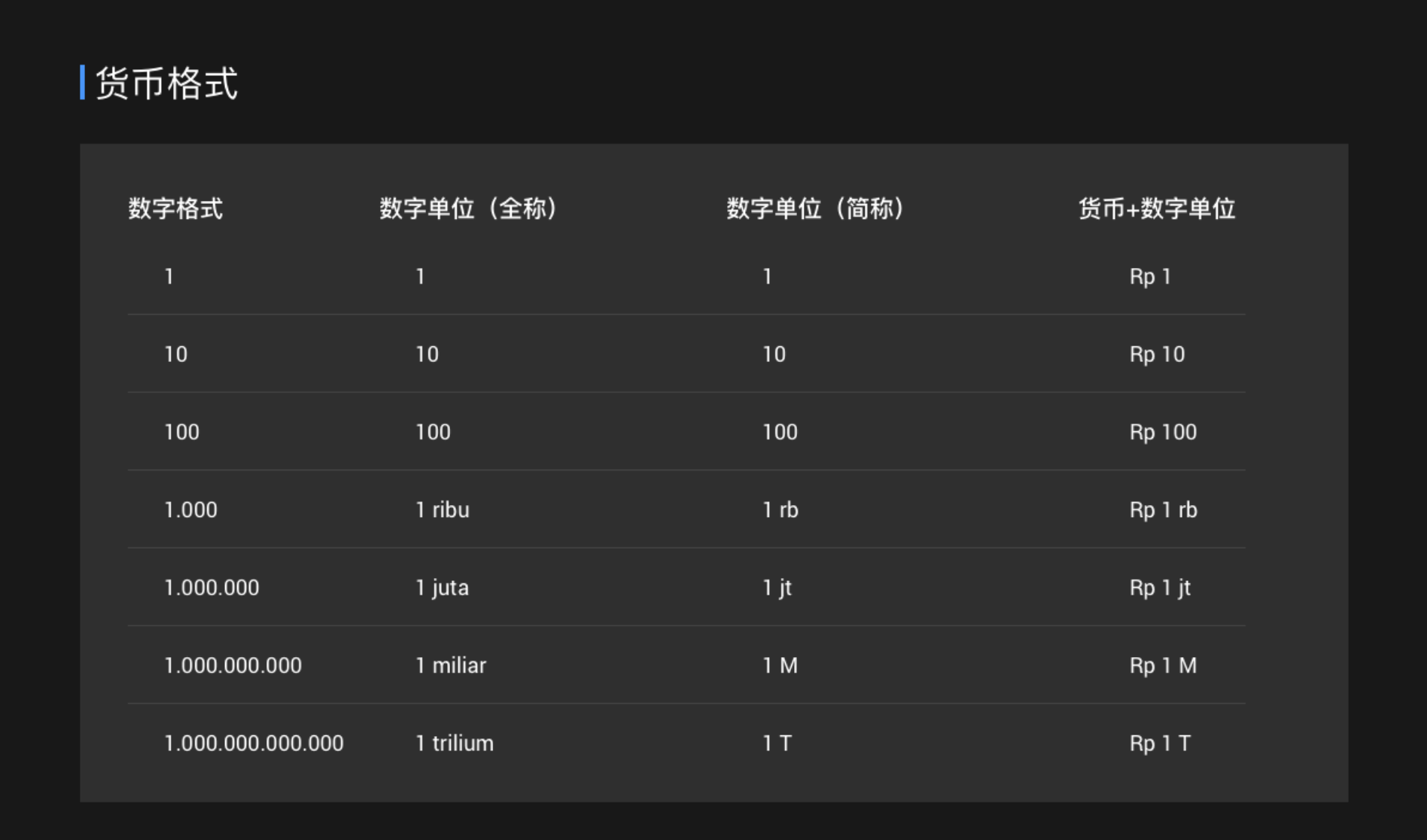 下圖是印尼的貨幣格式。