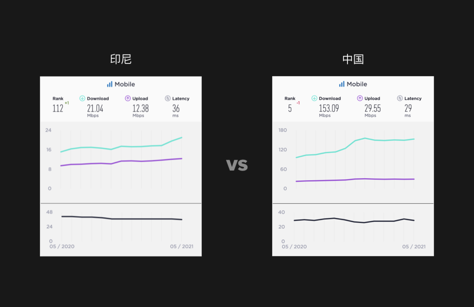 下圖是 2021 年數(shù)據(jù),印尼的下載網(wǎng)速 21.04Mbps, 在全球排名 112。中國的下載網(wǎng)速是 153.09Mbps, 全球排名第 5,進(jìn)行對比后大家對印尼的網(wǎng)絡(luò)環(huán)境應(yīng)該更有體感了。