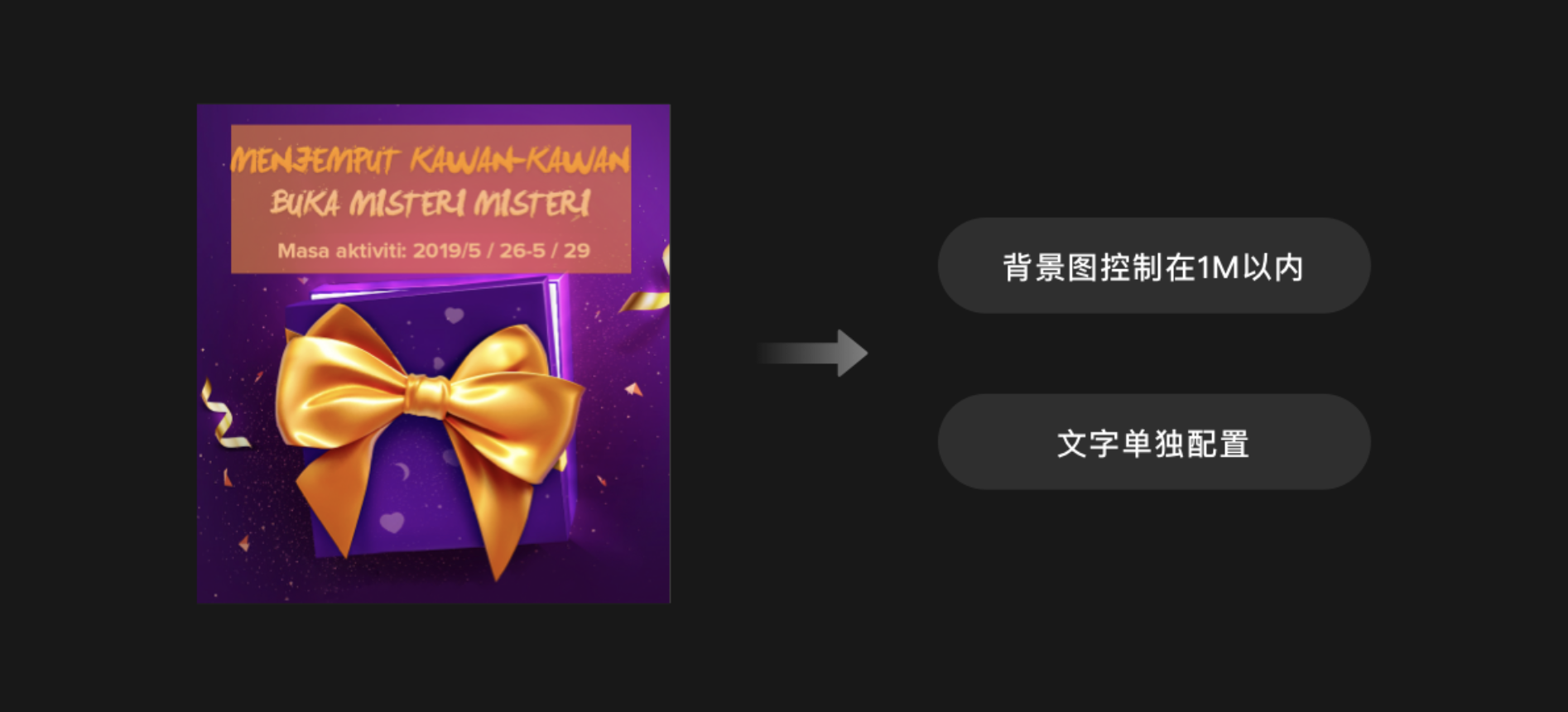 注意不要將文字直接嵌入圖片或視頻媒體中,需要分別以較小的個體進(jìn)行存儲,便于替換。交付給開發(fā) GG 的圖片也必須壓縮一下,不能超過 1M,不然會影響加載速度。