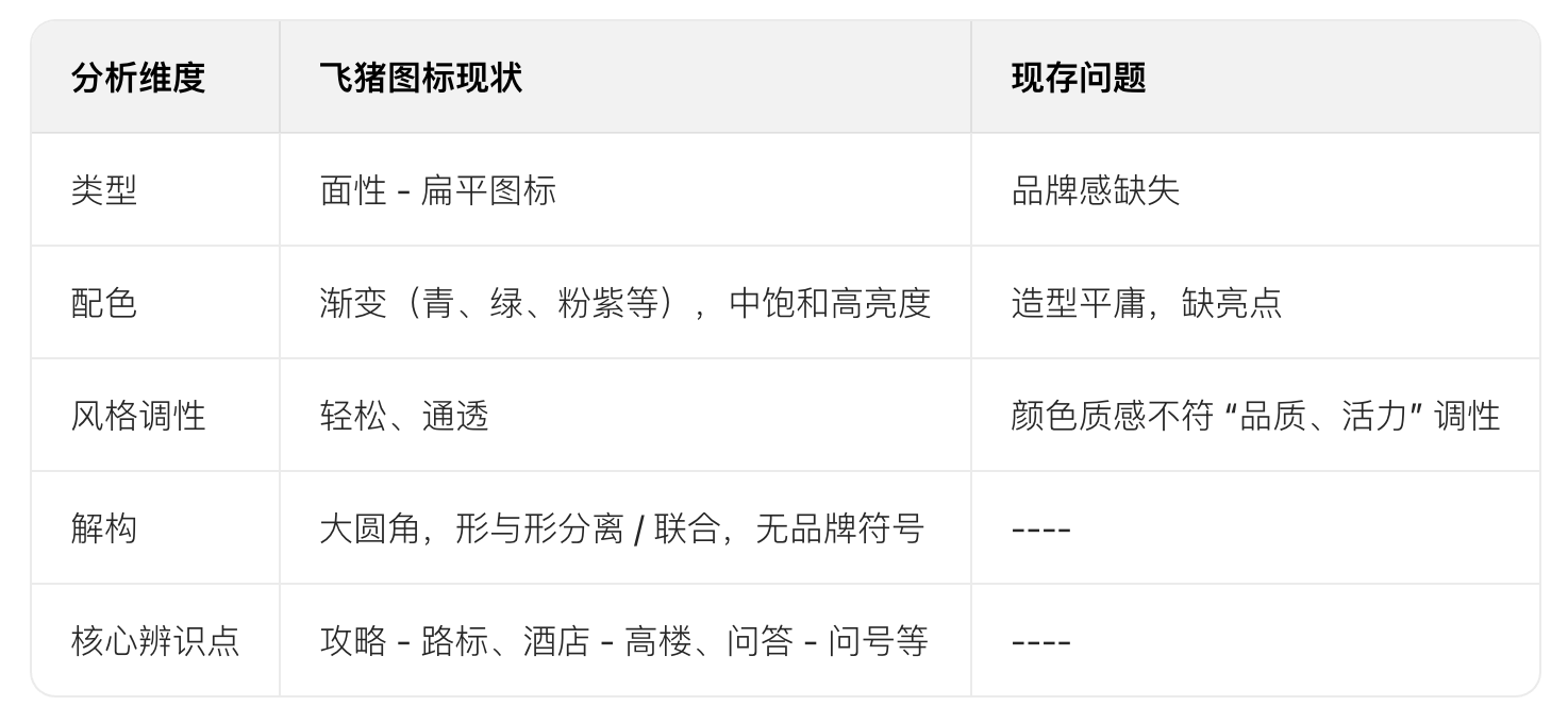答案:從品牌中提取簡(jiǎn)約幾何形作為超級(jí)符號(hào)(如飛豬的傾斜矩形),將其輪廓化、抽象化后融入圖標(biāo)結(jié)構(gòu),避免復(fù)雜圖形。例如飛豬在 “酒店” 圖標(biāo)中嵌入品牌符號(hào),強(qiáng)化識(shí)別度,與競(jìng)品形成差異。