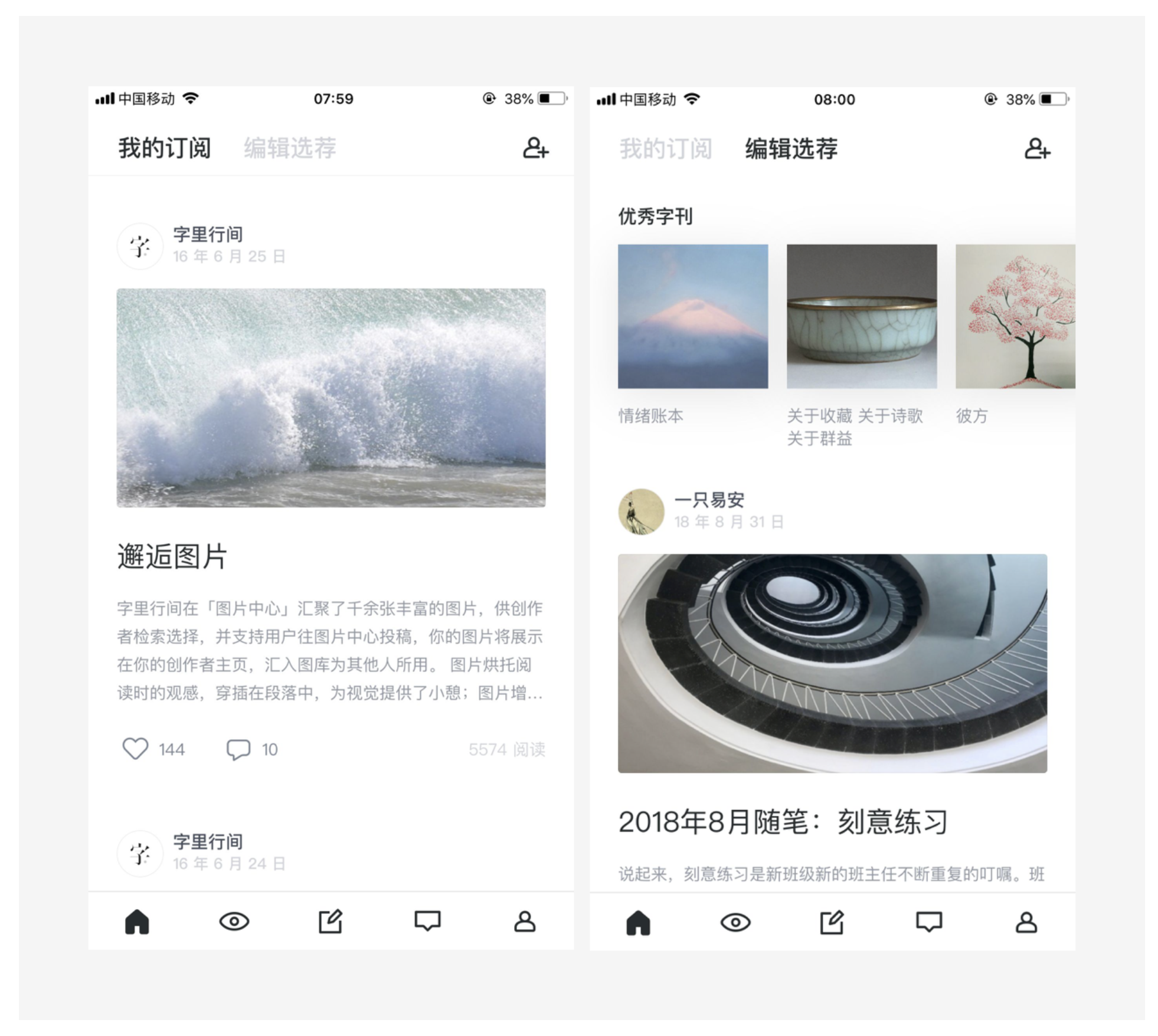 - 簡(jiǎn)約:簡(jiǎn)潔界面減少用戶錯(cuò)誤操作和認(rèn)知成本,如字里行間 APP 設(shè)計(jì)簡(jiǎn)潔,結(jié)構(gòu)清晰。