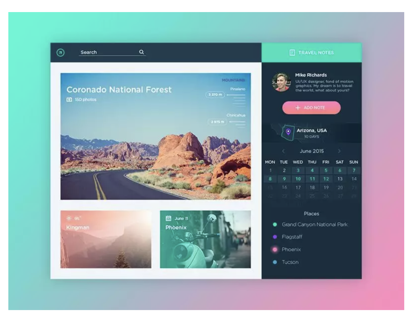 自 2018 年起,漸變成為一種新趨勢,在設(shè)計中更多地應(yīng)用漸變,能夠增強(qiáng)顏色的感染力。不過,很多設(shè)計曾傾向于避免使用漸變色,但現(xiàn)在漸變色的潛力越來越大,在設(shè)計中合理應(yīng)用,反而能為顏色選擇加分。
