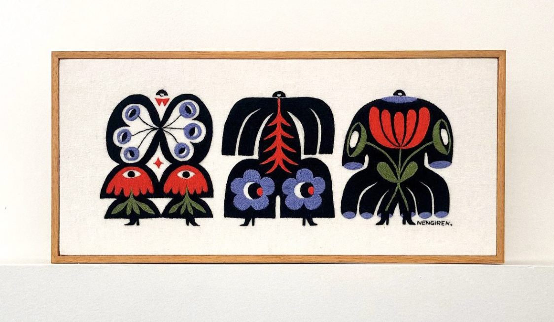 當一根緞面繡線在棉布上蜿蜒,勾勒出娃娃領(lǐng)的弧度;當幾何色塊與鮮艷針腳碰撞,撐起一件迷你裙擺 —— 印尼藝術(shù)家 Irene Saputra(藝名 Nengiren)正用最傳統(tǒng)的刺繡工藝,做著最時髦的 “角色穿搭實驗”。她筆下的 “nona kecil”(印尼語 “小女孩”)系列,不是靜態(tài)的玩偶,而是每天都有新造型的 “時尚 Icon”,在針與線的交錯間,完成了手工藝與現(xiàn)代時尚的溫柔對話。