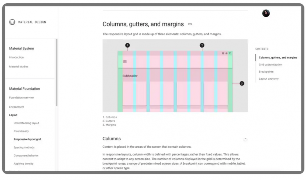 Material Design的柵格布局是一種響應式設計系統(tǒng),旨在確保用戶界面在不同設備和屏幕尺寸上的一致性和靈活性。它主要基于12列的柵格系統(tǒng),允許設計師和開發(fā)者在布局中有效地組織內(nèi)容。