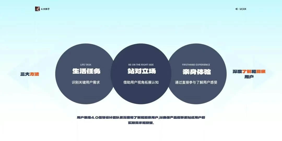 通過(guò)直接參與了解用戶感受 最直接的了解用戶的方式是親身體驗(yàn)。通過(guò)設(shè)計(jì)團(tuán)隊(duì)成員親自參與用戶使用產(chǎn)品的過(guò)程,能夠更深刻地感受用戶的需求和體驗(yàn)。這一方法不僅提供了實(shí)際的用戶反饋,還能夠從設(shè)計(jì)者的角度直觀地感知用戶的情感和體驗(yàn),為產(chǎn)品的優(yōu)化提供實(shí)質(zhì)性的依據(jù)。 通過(guò)這三大方法,用戶思維4.0倡導(dǎo)設(shè)計(jì)團(tuán)隊(duì)更深度地了解和洞察用戶,以確保產(chǎn)品能夠更貼近用戶的實(shí)際需求和期望。
