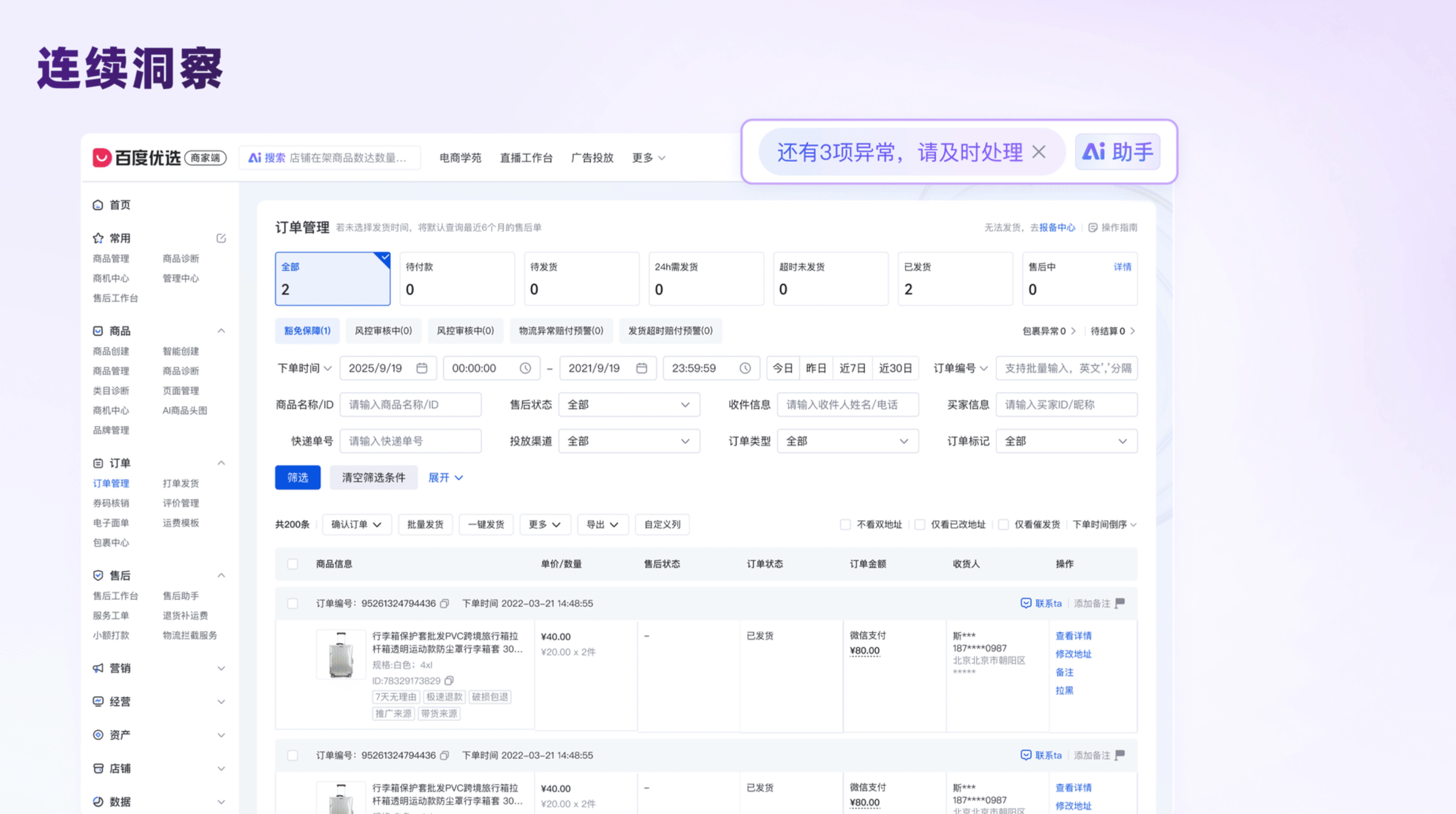 本次百度優(yōu)選商家后臺(tái) AI 體驗(yàn)升級(jí),始終以 **“以商家提效為中心”** 為設(shè)計(jì)核心,通過(guò) “場(chǎng)景篩選適配 + 交互形態(tài)創(chuàng)新”,落地嵌入式、伴隨式、托管式三大交互范式,精準(zhǔn)破解商品創(chuàng)建、多線程經(jīng)營(yíng)、客服接待等核心場(chǎng)景的使用痛點(diǎn);同時(shí)構(gòu)建 “視覺 + 多感” 的智能化感知體系,從根本上解決商家 “不會(huì)用、不敢信” 的體驗(yàn)困境。