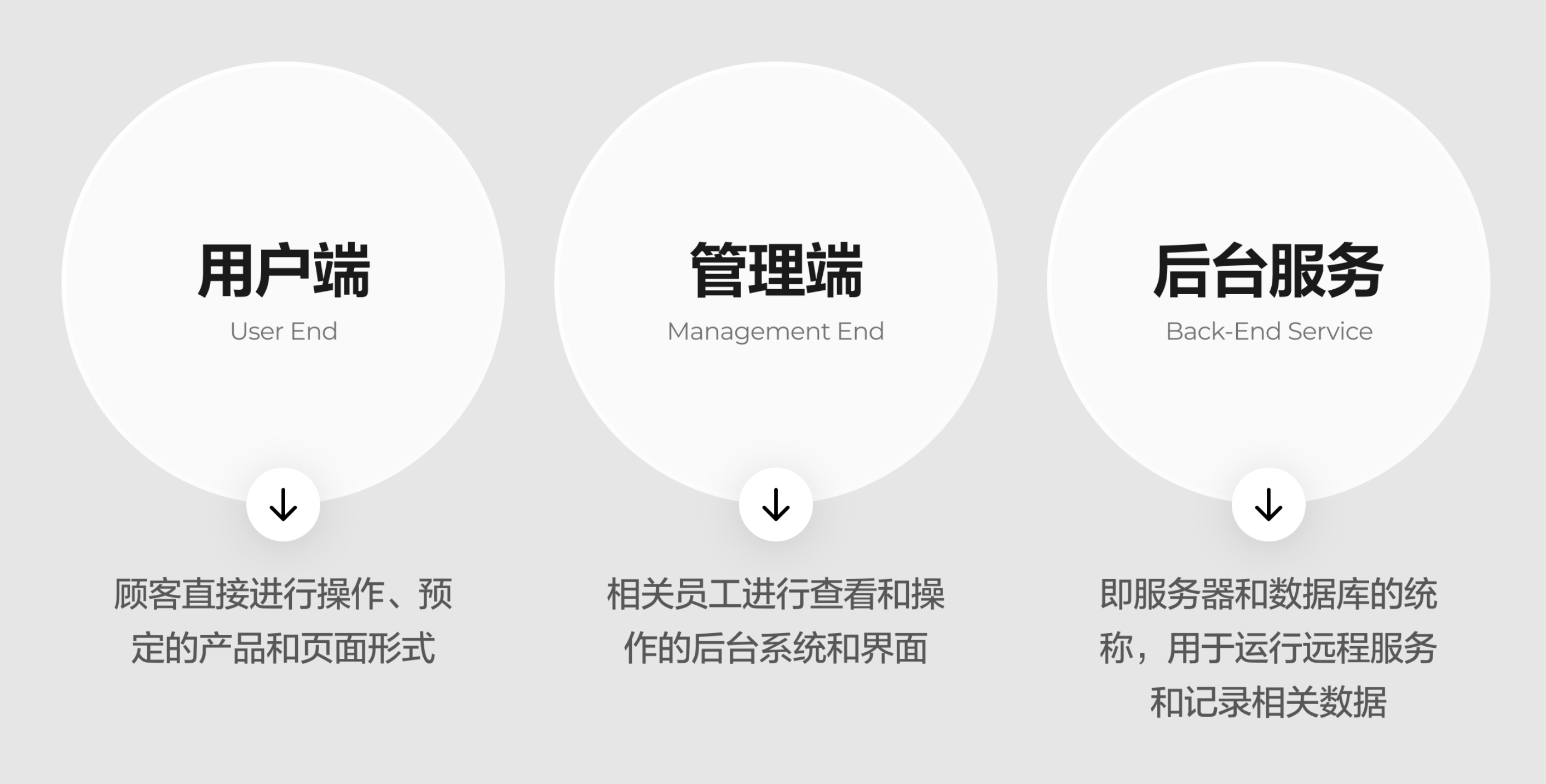 有了問(wèn)題,下一步就是建立產(chǎn)品的框架,比如這個(gè)業(yè)務(wù)會(huì)涉及到多個(gè)端,產(chǎn)品就要先創(chuàng)建多個(gè)端的功能框架出來(lái),包含的端可以簡(jiǎn)化成下面三個(gè):
