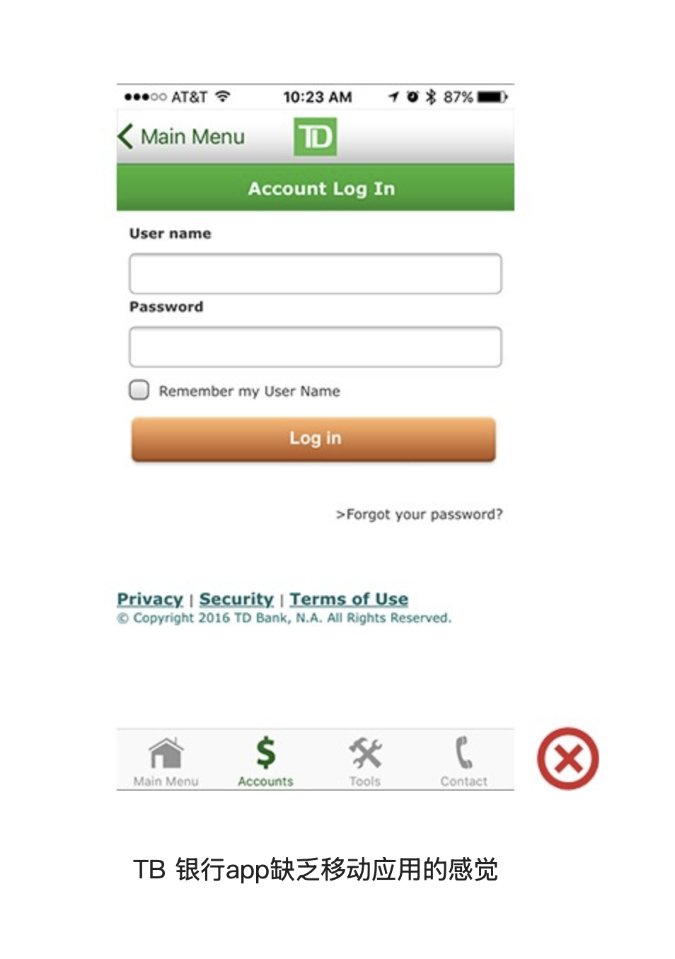 網(wǎng)頁(yè)端的交互模式與頁(yè)面元素,并不完全適用于移動(dòng) App。網(wǎng)頁(yè)中常用下劃線表示超鏈接,但在移動(dòng)應(yīng)用中,用戶更習(xí)慣通過(guò)按鈕完成跳轉(zhuǎn),下劃線設(shè)計(jì)會(huì)顯得突兀且不符合使用預(yù)期。曾有某銀行的 iOS 端 App,直接將網(wǎng)頁(yè)代碼包裝成應(yīng)用,界面中保留了網(wǎng)頁(yè)式的下劃線鏈接和底部版權(quán)信息,讓用戶誤以為打開的是移動(dòng)網(wǎng)頁(yè),而非原生 App,嚴(yán)重影響了產(chǎn)品的專業(yè)性與使用體驗(yàn)。