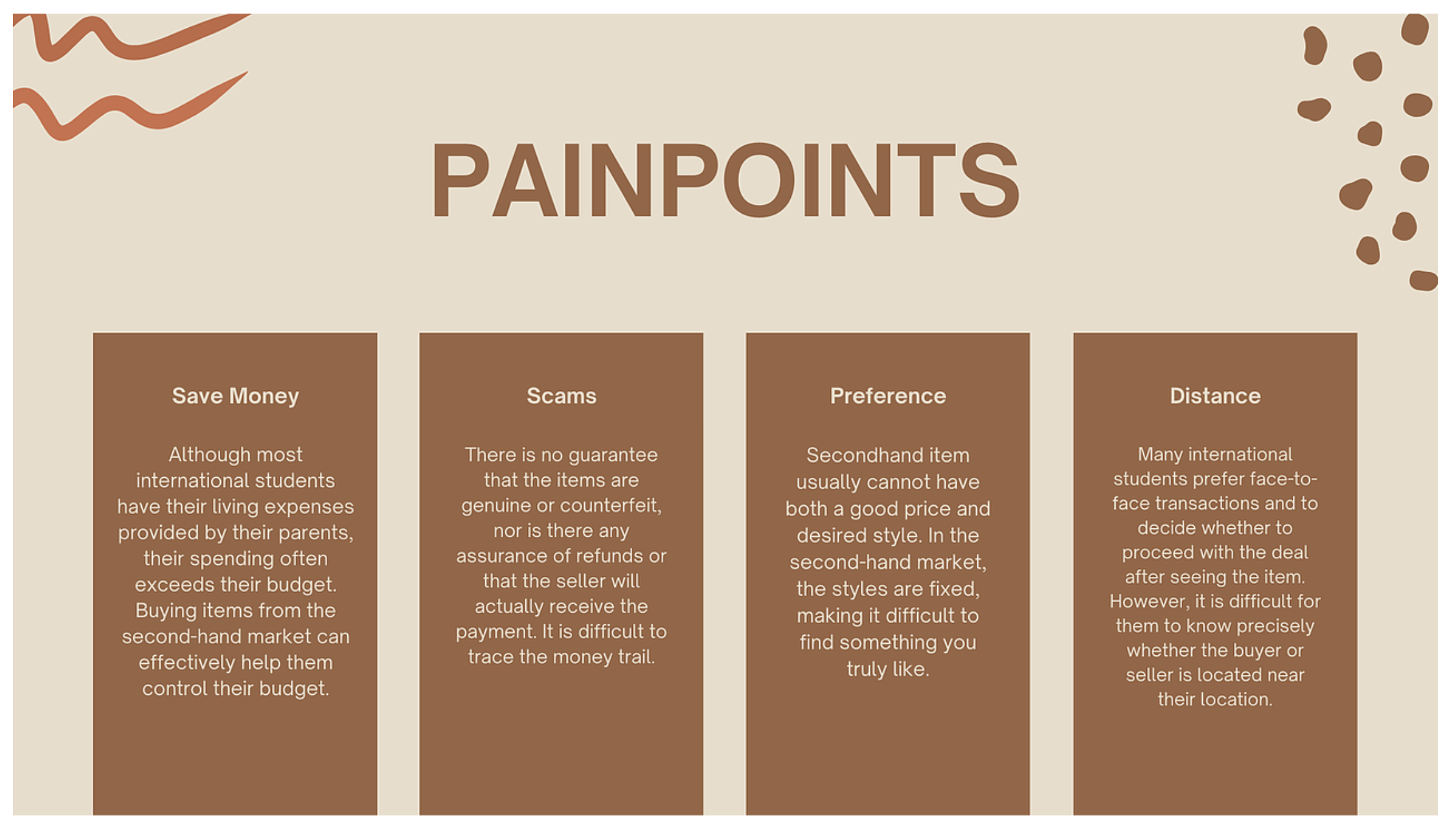 - 深入挖掘留學(xué)生在二手商品買賣過程中面臨的核心痛點(diǎn),明確其在交易安全、價格評估、溝通效率、物流適配等方面的具體需求;