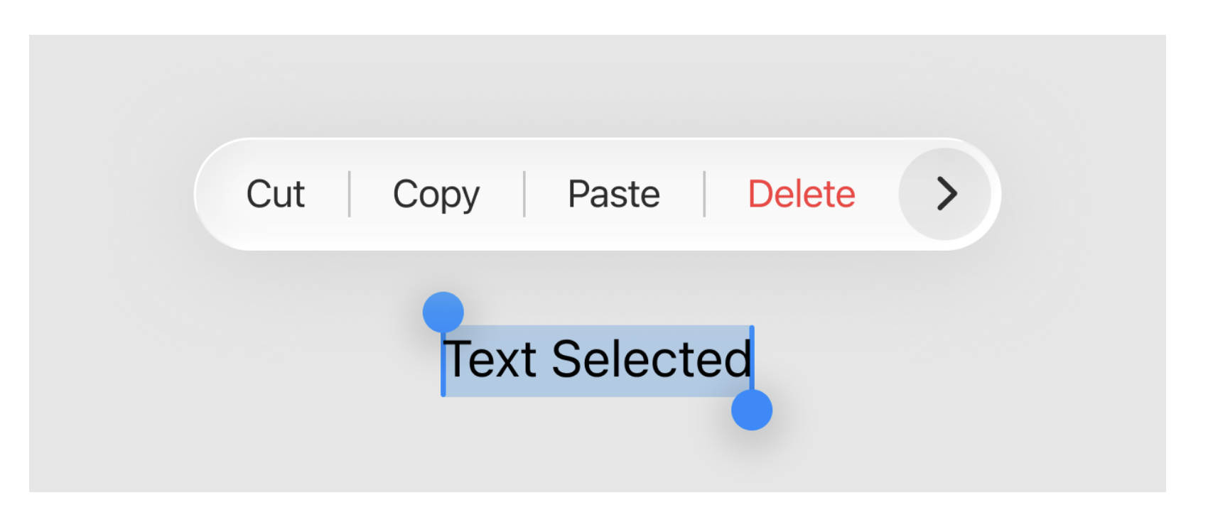 菜單的特殊細(xì)分類型,聚焦文本、圖片等內(nèi)容的編輯操作,包含剪切、復(fù)制、粘貼、全選、翻譯等固定命令。iOS 會(huì)自動(dòng)根據(jù)選中數(shù)據(jù)類型匹配相關(guān)操作(如選中地址時(shí)新增 “獲取路線”),無(wú)需額外自定義。iOS26 中取消了指向內(nèi)容的小箭頭,邊框改為全圓角設(shè)計(jì),視覺更簡(jiǎn)潔。