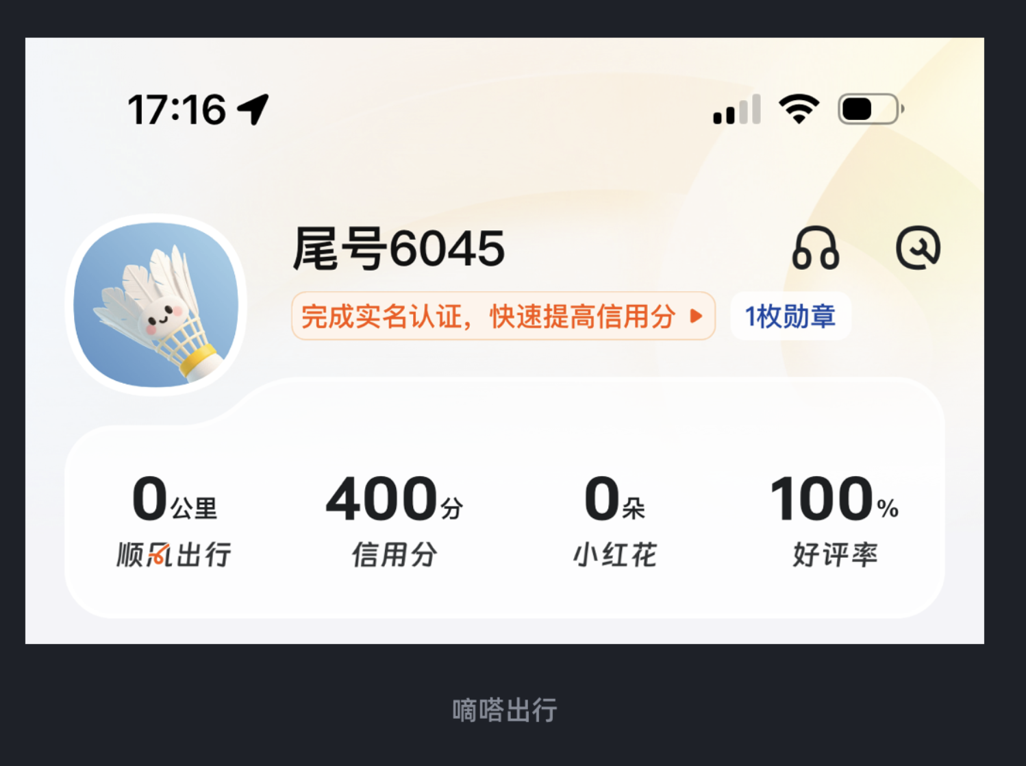 嘀嗒出行的個人中心設(shè)計就很有想法,它采用超橢圓造型打造頭像區(qū)域,同時讓卡片左上角做凹陷處理,剛好與超橢圓頭像形成視覺呼應(yīng)。這種設(shè)計既突出了頭像這一核心元素,又巧妙填補了常規(guī)布局的負空間,避免了畫面的空洞感,讓整體結(jié)構(gòu)更緊湊、造型更獨特,看似簡單的結(jié)構(gòu)調(diào)整,卻讓整個個人中心的視覺體驗煥然一新。