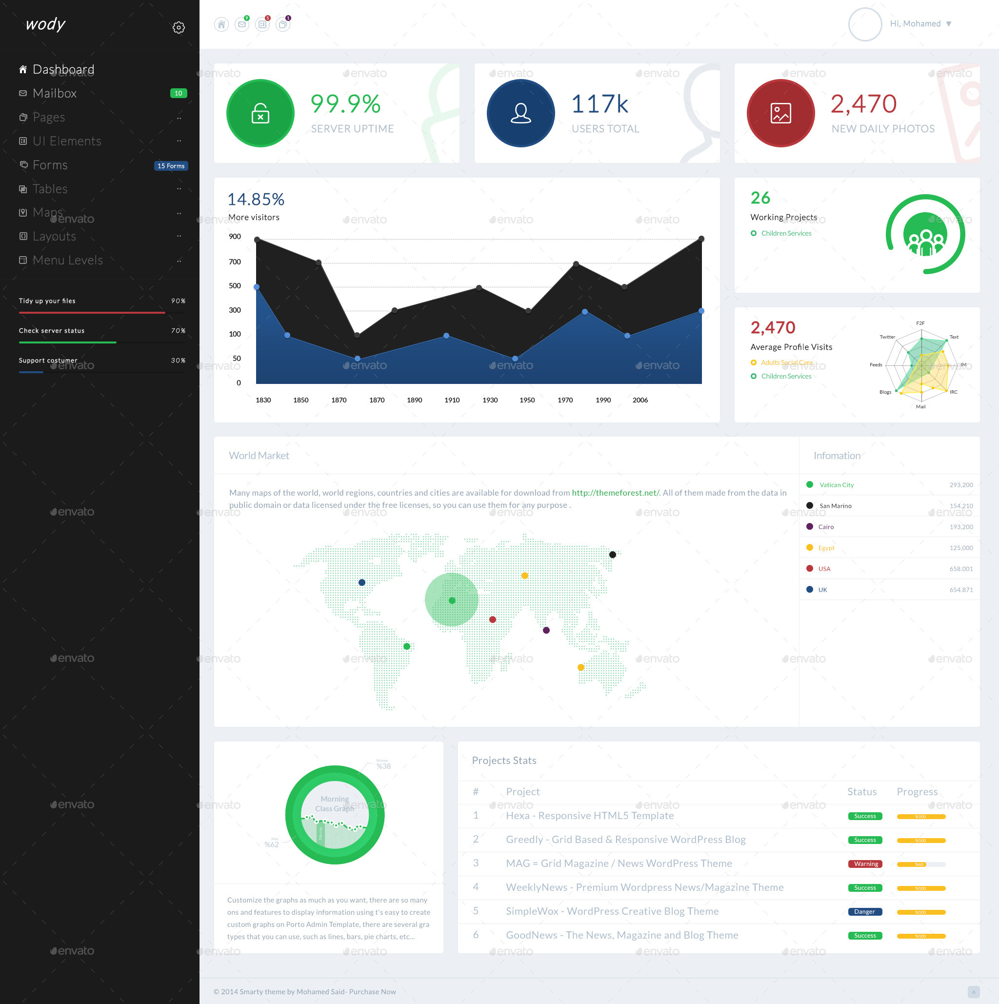 藍(lán)藍(lán)設(shè)計(jì)是一家專(zhuān)注而深入的設(shè)計(jì)公司,致力于提供有效、經(jīng)典卓越的設(shè)計(jì),在工作中,目前有很多客戶(hù)選擇購(gòu)買(mǎi)了Bootstrap ui的框架,客戶(hù)們選擇Bootstrap的原因是因?yàn)樗目蚣苤性S多組件已經(jīng)寫(xiě)好,js等很方便直接引用,程序員們只需直接用就可以,可以把工作的重心放在后臺(tái)程序的開(kāi)發(fā)上。但是Bootstrap ui只是提供了各種元素,無(wú)法直接使用,需要進(jìn)行二次設(shè)計(jì)和開(kāi)發(fā)。藍(lán)藍(lán)設(shè)計(jì)做了許多這樣的工作,包括整合客戶(hù)的業(yè)務(wù)和需求重新設(shè)計(jì)頁(yè)面的風(fēng)格和布局,最后切圖修改Bootstrap ui的css,這里是我們工作前收集的國(guó)外各種風(fēng)格扁平化后臺(tái)管理界面,做成系列欣賞,與大家分享~~~~