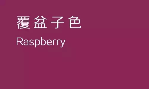 因覆盆子果實的顏色而得名,泛深紫色的紅色。