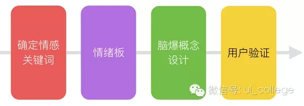 確定情感關鍵詞 -> 情緒版 -> 腦爆概念設計 -> 用戶驗證
