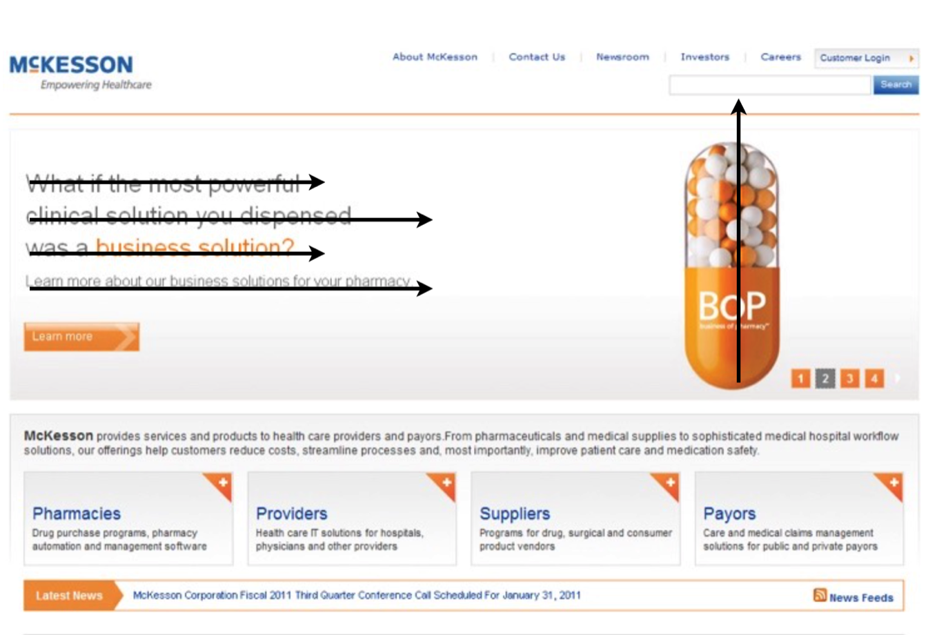 另外,對(duì)于色彩的運(yùn)用也不會(huì)是一味地迎合人們的視覺習(xí)慣,色彩同樣可以用于引導(dǎo)瀏覽,把用戶的視線“牽著”走。我們可以預(yù)先在設(shè)計(jì)時(shí)考慮用戶的瀏覽路徑,用色彩來強(qiáng)化我們想要用戶知道的信息。
