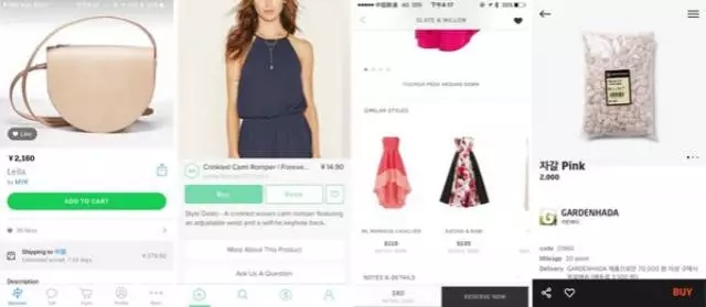 所有操作最終都希望被引導(dǎo)到我們想要去的地方,有的是商品購(gòu)買、有的是發(fā)布信息。通常這張頁(yè)面上會(huì)有多個(gè)行動(dòng)點(diǎn),作為設(shè)計(jì)師我們希望行動(dòng)點(diǎn)有主次之分,重點(diǎn)突出最核心的操作(比如購(gòu)買)。有些需求方恨不得每一個(gè)行動(dòng)點(diǎn)(購(gòu)買、購(gòu)物車、分享、收藏…)都讓用戶第一時(shí)間看到,我相信不少設(shè)計(jì)師都應(yīng)該遇到過(guò)類似問(wèn)題。但如果站在簡(jiǎn)潔的角度出發(fā),我們分析一下備選的幾款A(yù)PP,“主次分離”的概念就很容易講的清楚了。
