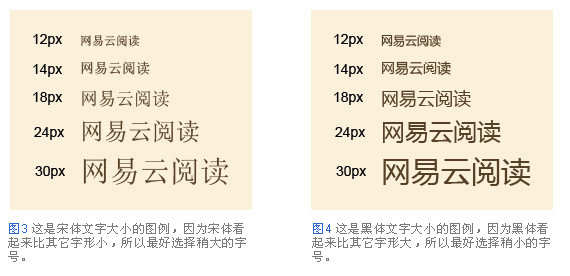 下圖是適用于一般文章正文文字大小的圖例。即便是相同大小的文字,字體不同看起來大小也不一樣。而且選擇文字大小時(shí),需要考慮文章的閱讀方式,比如,是在大屏幕機(jī)器還是小屏幕。(圖3-4)