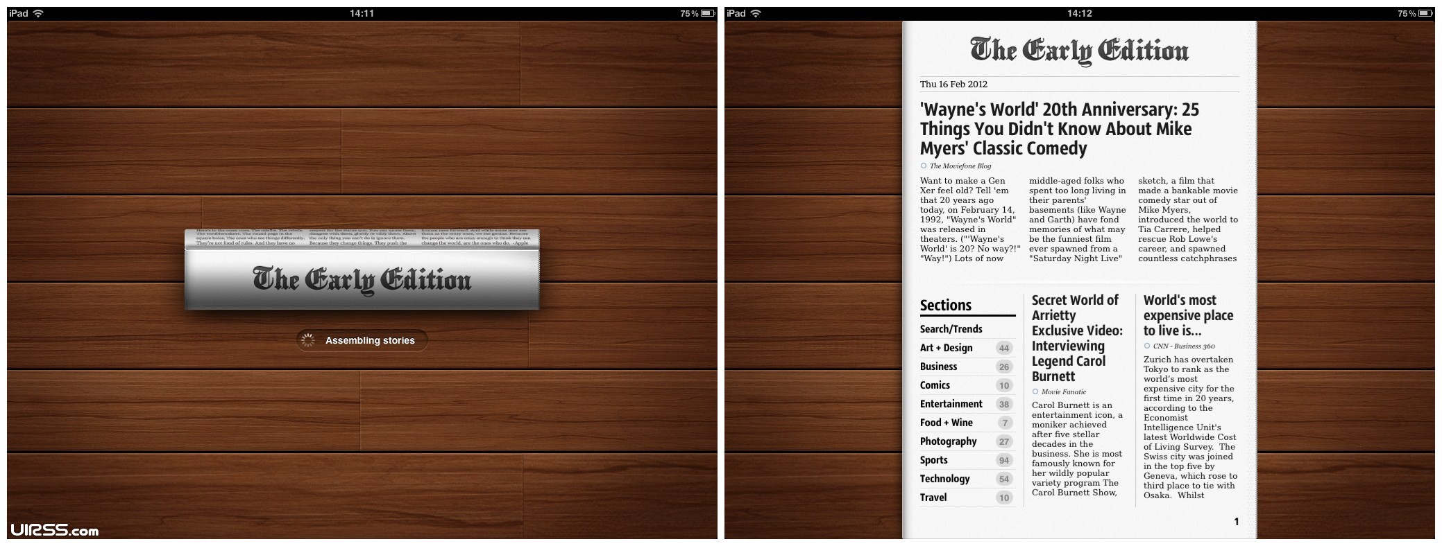 如Flipboard打開應(yīng)用時(shí),cover從舊版的固定圖片變?yōu)槟阌嗛唭?nèi)容的圖片,在第一時(shí)間建立起閱讀內(nèi)容和用戶的聯(lián)系,在等待過程的同時(shí)閱覽正在更新的信息。