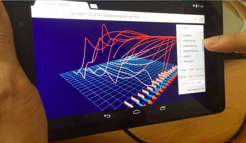 例如 http://www.hightopo.com/guide... 中的 ht.Default.startAnim 函數(shù),該函數(shù)支持 Frame-Based 和 Time-Based 兩種方式的動(dòng)畫,為了理解其中的 Easing 參數(shù)可參見 《透過WebGL 3D看動(dòng)畫Easing函數(shù)本質(zhì)》文章和 http://www.hightopo.com/guide... 這個(gè)例子