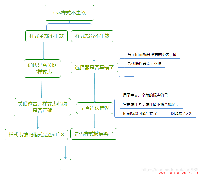 后代子代選擇等,涉及多個標(biāo)簽,類名、id等,子選擇器的順序、名字等寫錯了,均可能導(dǎo)致出錯;