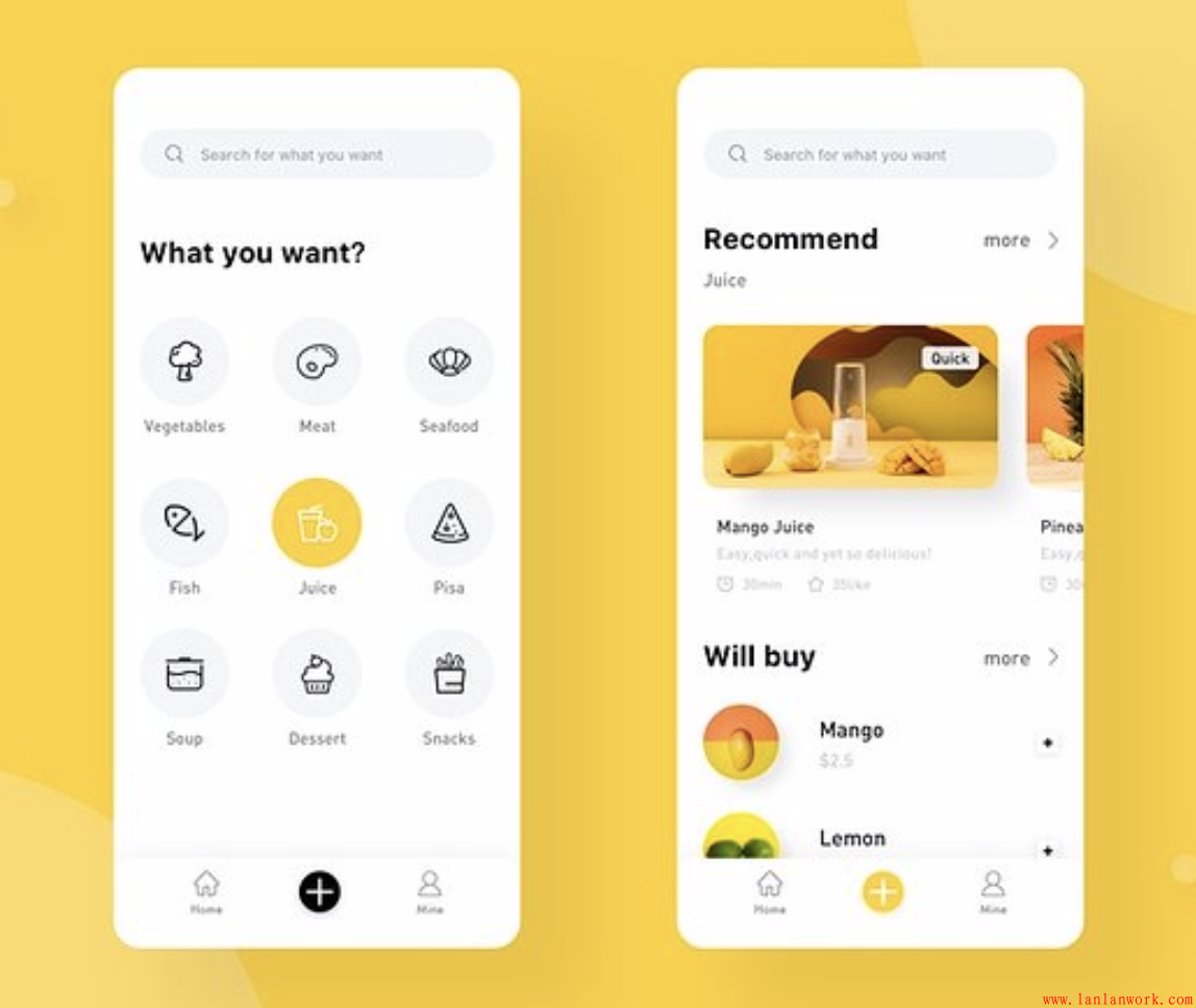 藍(lán)藍(lán)設(shè)計(jì)分享一組國外的亮麗黃色界面,并結(jié)合界面案例做展開分析。
