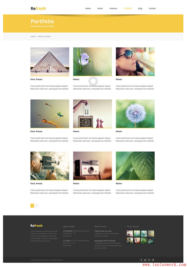 這個(gè)博客頁面分別用黃色和灰色做背景,形成對(duì)比,又互相襯托,同時(shí)有所側(cè)重。白色半透明色塊鋪在黃色背景上,對(duì)主題進(jìn)行描述,也形成一種顏色深淺明暗的對(duì)比。