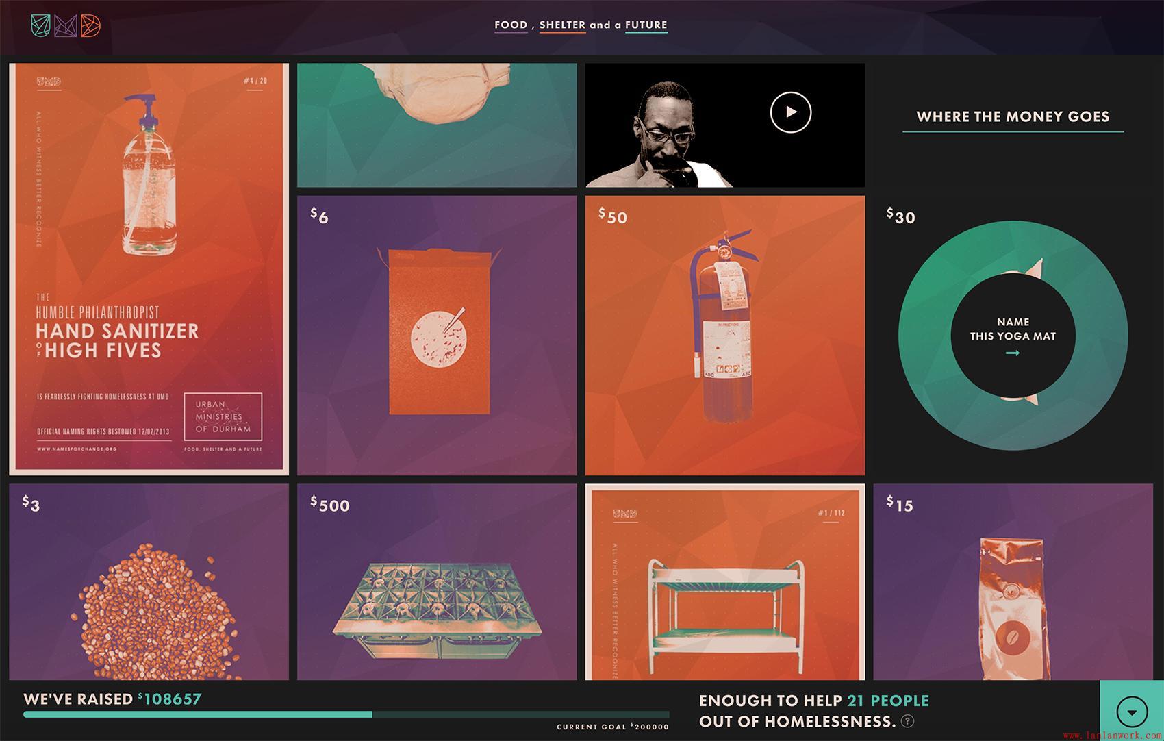 然而,所選擇的音調(diào)有助于克服該站點(diǎn)意義的潛在困難之一。為襪子或衛(wèi)生棉條等日常用品籌款并不足以讓自己出售,因此該網(wǎng)站的激進(jìn)圖形基調(diào)提高了日常用品的感知價(jià)值,同時(shí)建立了必要的基礎(chǔ)組織結(jié)構(gòu)。