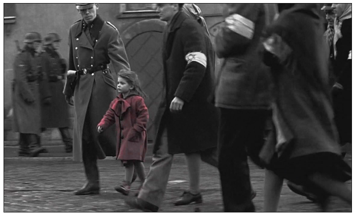 辛德勒名單電影中的某鏡頭,通過(guò)色彩強(qiáng)烈的對(duì)比拉開(kāi)視覺(jué)層次,給觀眾留下了深刻的印象同時(shí)成為經(jīng)典
