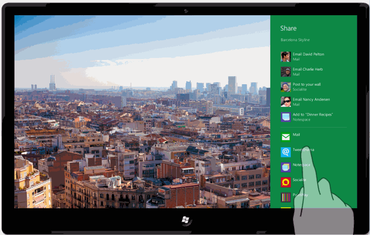 而在Metro風格的應用當中,我們會使用分享契約 。這種技術方案簡化了設計與開發(fā)方面的工作,因為我們不需要為用戶有可能用到的社會化服務而將它們與每個單獨的應用都逐一整合起來。不僅是社會化服務,用戶還可以將信息保存共享至平臺上所有那些使用了分享契約的應用,而開發(fā)者們則無需擔心外部服務的接口問題。站在用戶的角度,他們可以在charms bar這個固定的地方完成有關分享的操作。