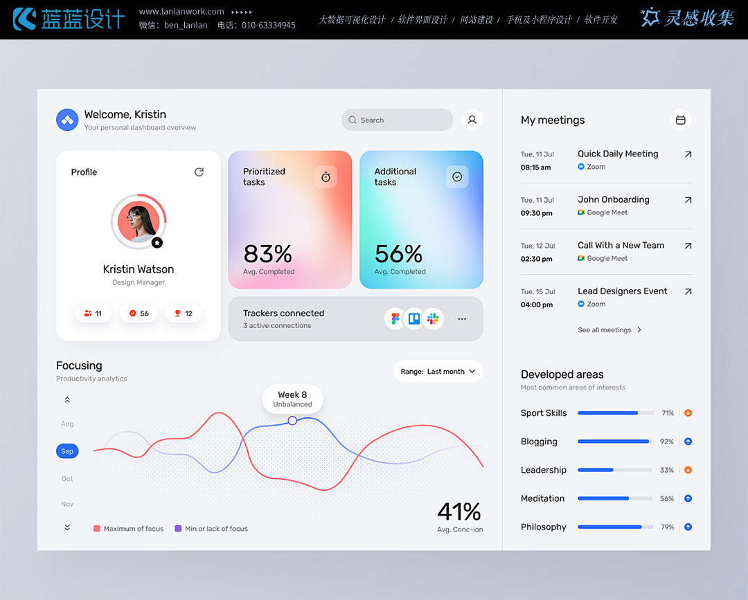 藍藍設(shè)計(www.chenguixiang.net )是一家專注而深入的界面設(shè)計公司,為期望卓越的國內(nèi)外企業(yè)提供卓越的大數(shù)據(jù)可視化界面設(shè)計、B端界面設(shè)計、桌面端界面設(shè)計、APP界面設(shè)計、圖標(biāo)定制、用戶體驗設(shè)計、交互設(shè)計、UI咨詢、高端網(wǎng)站設(shè)計、平面設(shè)計,以及相關(guān)的軟件開發(fā)服務(wù),咨詢電話:01063334945。我們建立了一個微信群,每天分享國內(nèi)外優(yōu)秀的設(shè)計,有興趣請加入一起學(xué)習(xí)成長,咨詢及進群請加藍小助微信ben_lanlan。